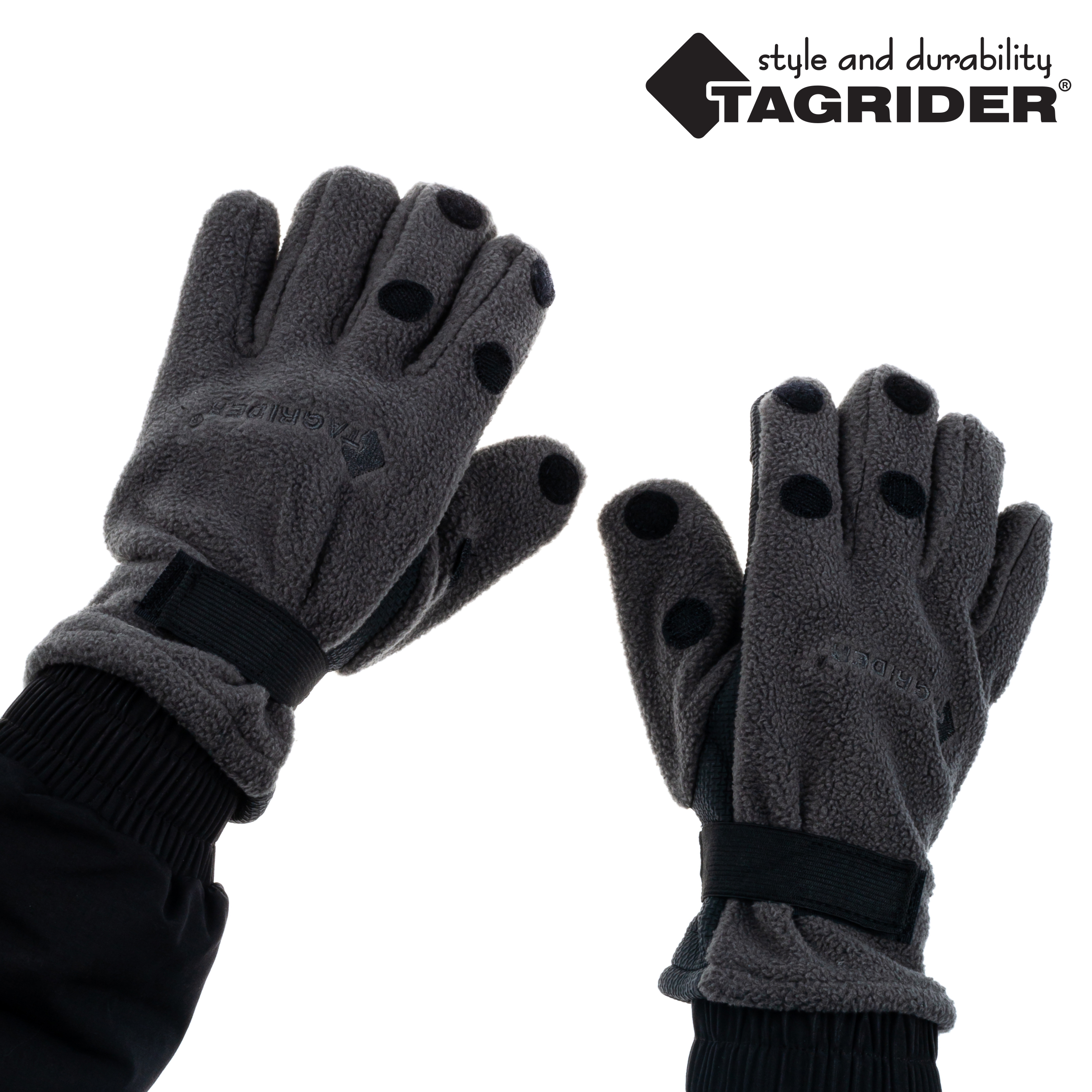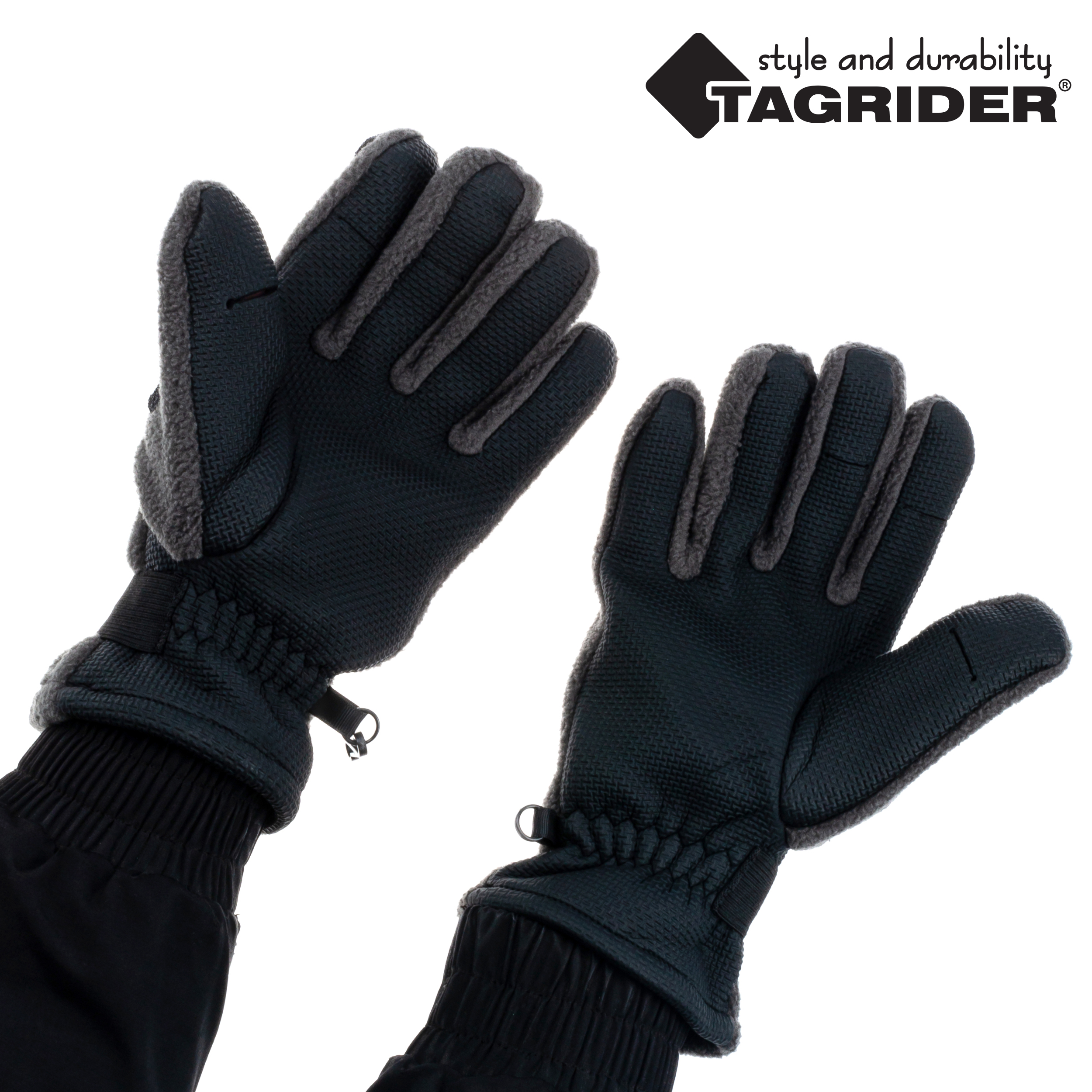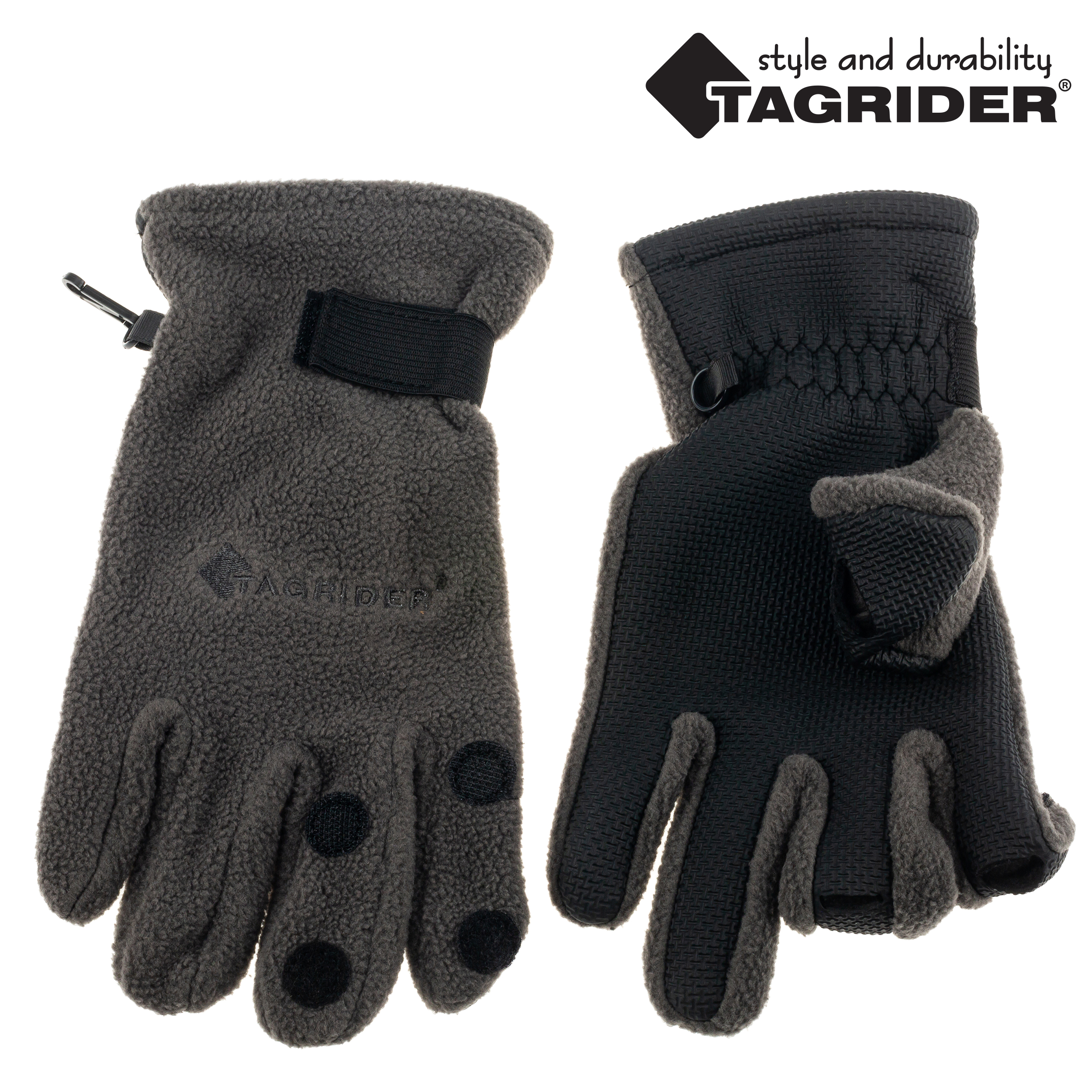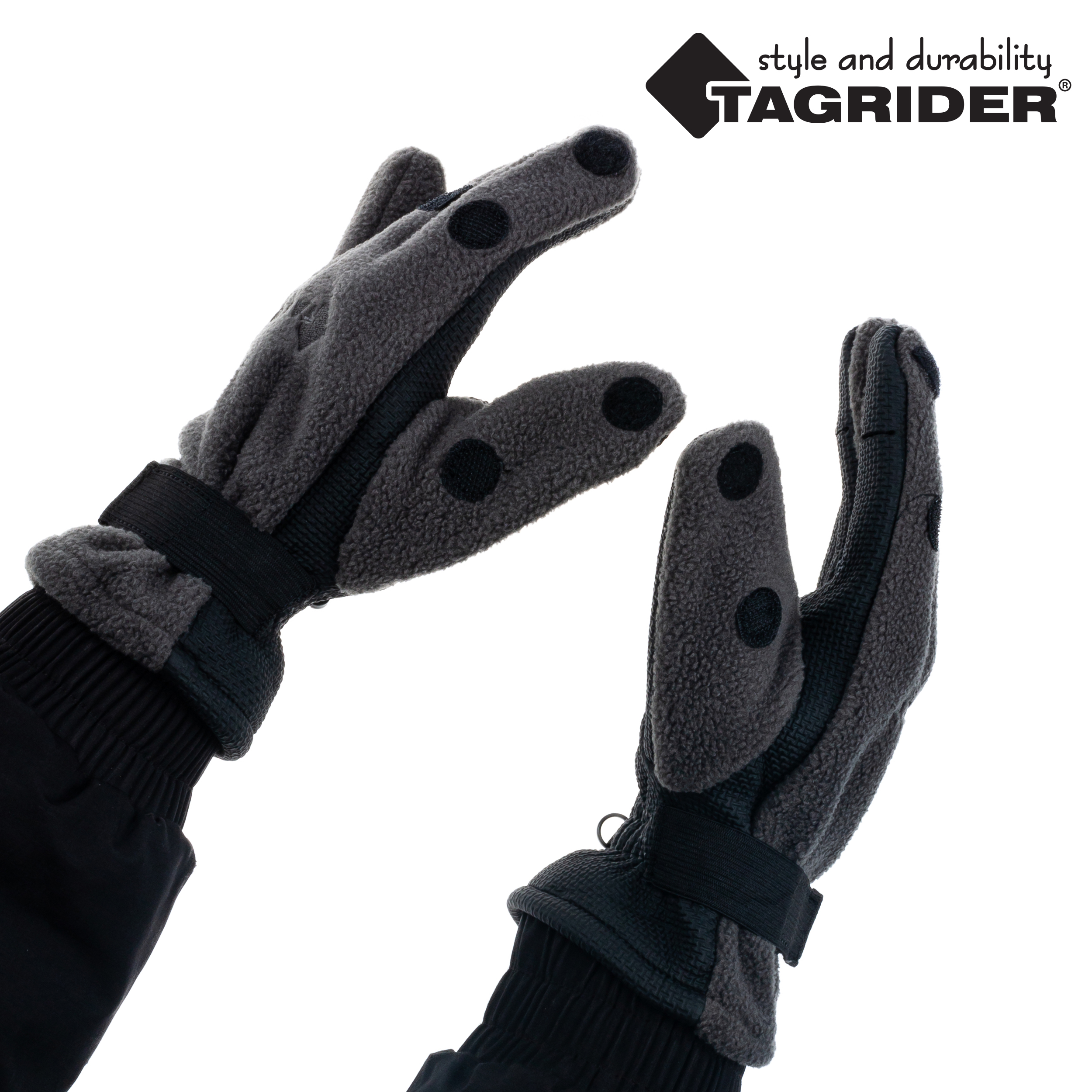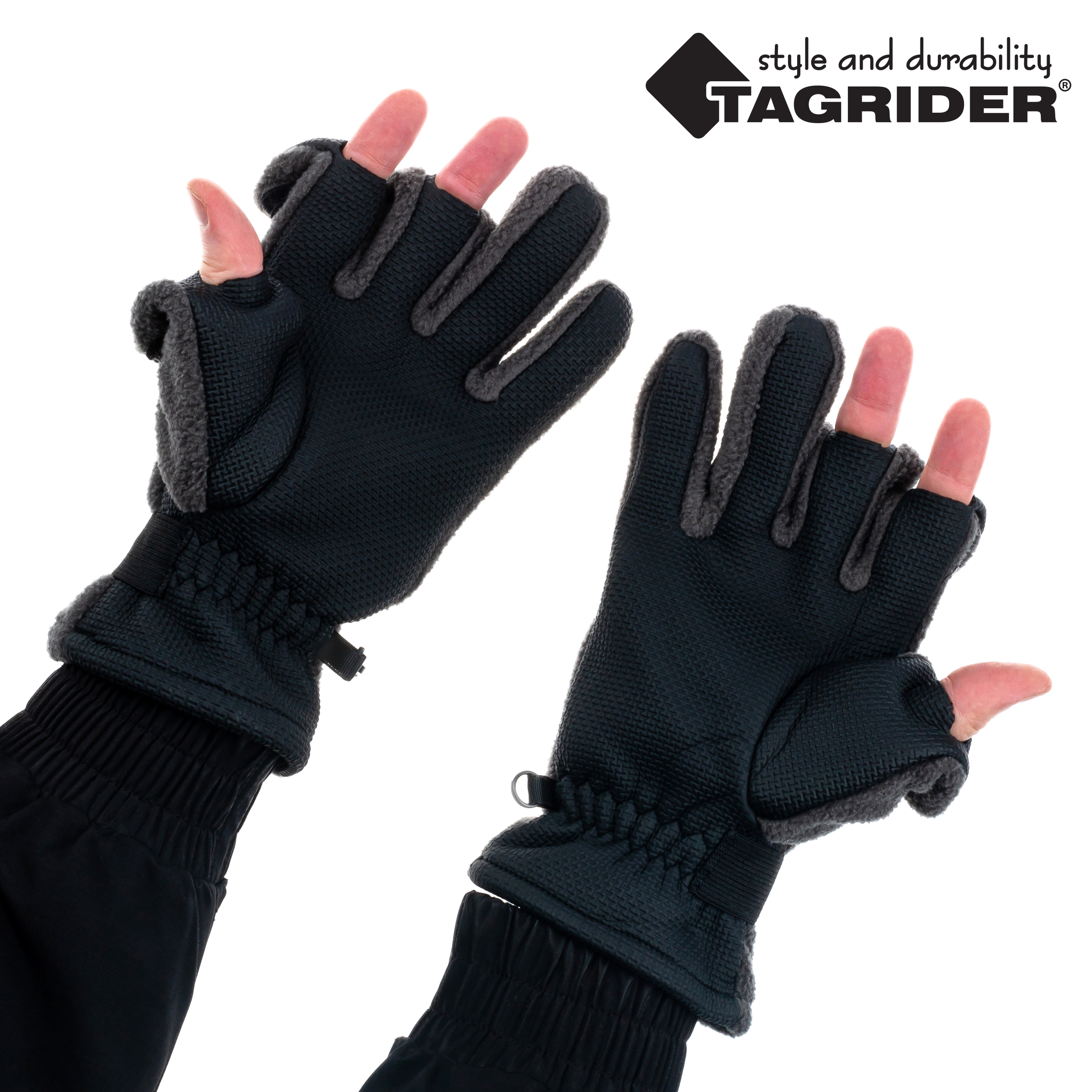 Перчатки Tagrider 095-7 неопреновые флис 3 откидных пальца темный графит.