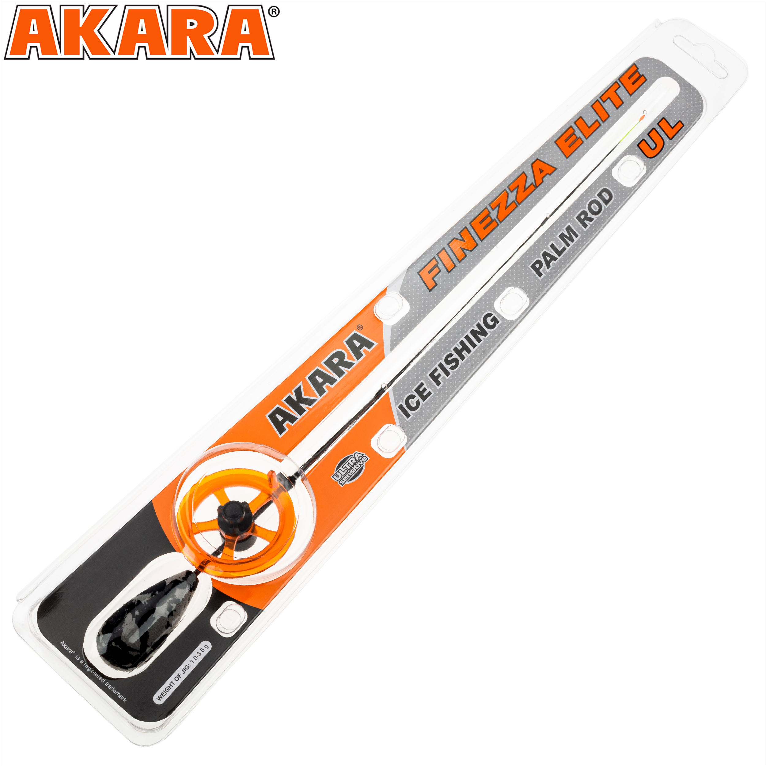 Зимние удочки Akara Finezza Elite отличаются открытой катушкой, что снижает вес и выглядит очень современно. Ручка из теплого разноцветного ЭВА обеспечивает комфортный хват на морозе. Модель предназначена для ловли на мормышку. Как и в базовой Finezza, здесь не нужен кивок — сигнализатором служит сам хлыст из тонкого стеклопластика, реагирующий на любую поклевку. Удочка отлично подходит для безмотыльной ловли и крупной рыбы. Серия включает два вида хлыстов: UL с тестом 0,7-2,8 г и L с тестом 1-3,2 г. Вес удочки всего 11,5г.