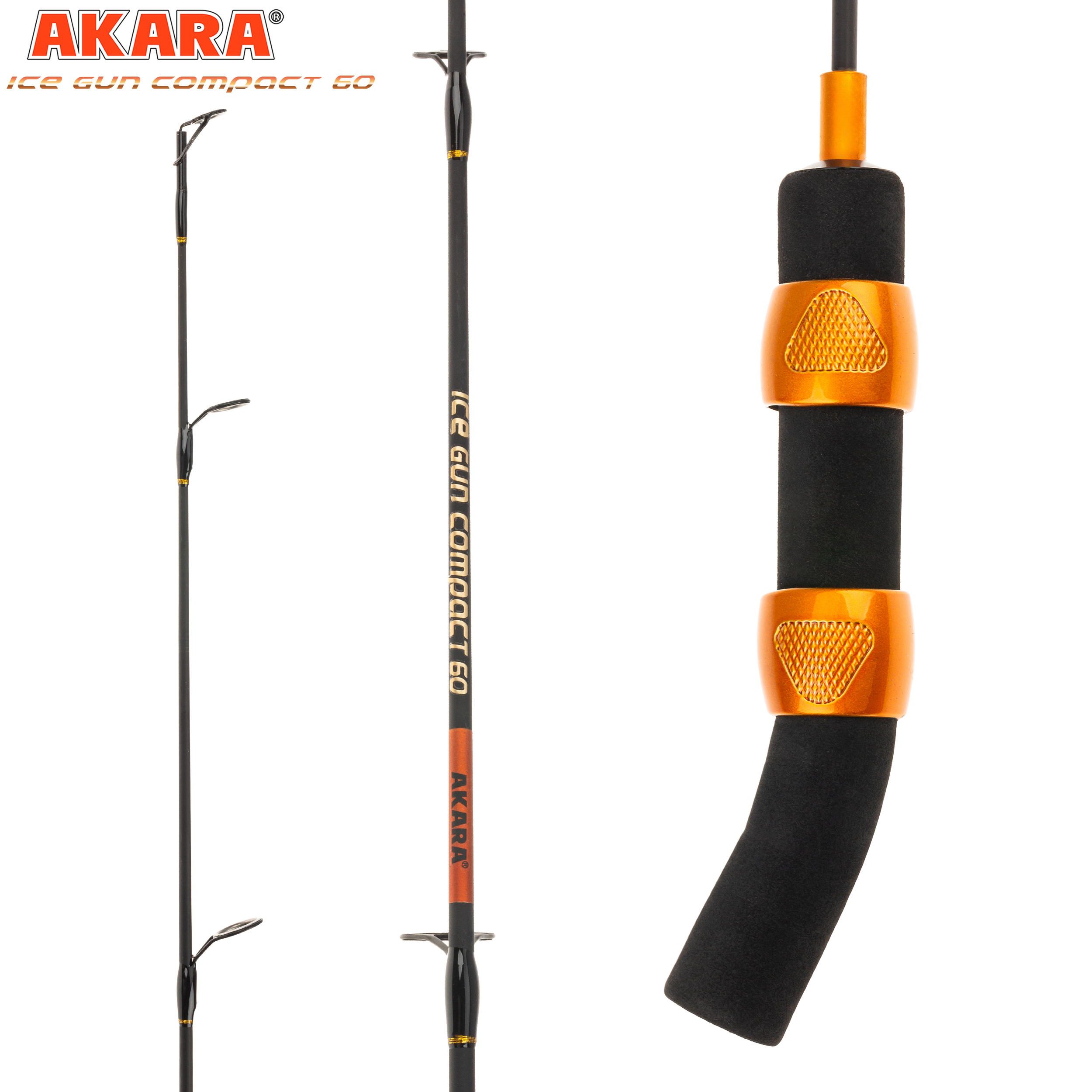 Зимняя удочка для блеснения Akara Ice Gun предназначена для ловли крупной хищной рыбы, особенно щуки. Ее углепластиковый хлыст с крупными кольцами защищен от обмерзания. Удобная неопреновая ручка пистолетного типа оснащена двумя силиконовыми кольцами для крепления катушки, оптимально подходят проводочные модели, такие как Akara Elantra. Удилище рассчитано на приманки до 40 граммов, его собственный вес 42 грамма. Akara Ice Gun Compac - длина 60 см. Akara Ice Gun Compact - длина 45 см в сложенном виде.